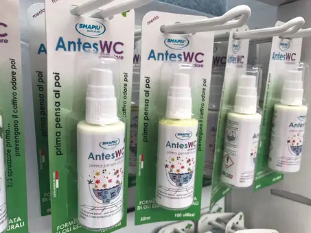 20 Aug. 201817 RONSpray inovativ fabricat in Italia, produs dintr-un amestec de uleiuri esentiale naturale, eficient in impiedicarea raspandirii in toalete, a mirosurilor neplacut. Pulverizarea in vasul de toaleta, formeaza o bariera intre acesta si ambient, lasand incaperea parfumata pentru mult timp. Este ideal pentru baile fara ferestre si are un placut parfum de menta. Puteti sa-l purtati si in geanta dumneavoastra pentru a-l folosit si in alte toalete. Se poate folosi si in aerul din incaperi. Prezent in sase variante, cu mireasma de lavanda, menta, mosc, pin, portocale sau vanilie. Livram oriunde in tara prin Fan Courier sau Posta Romana. Relatii si comenzi la **********